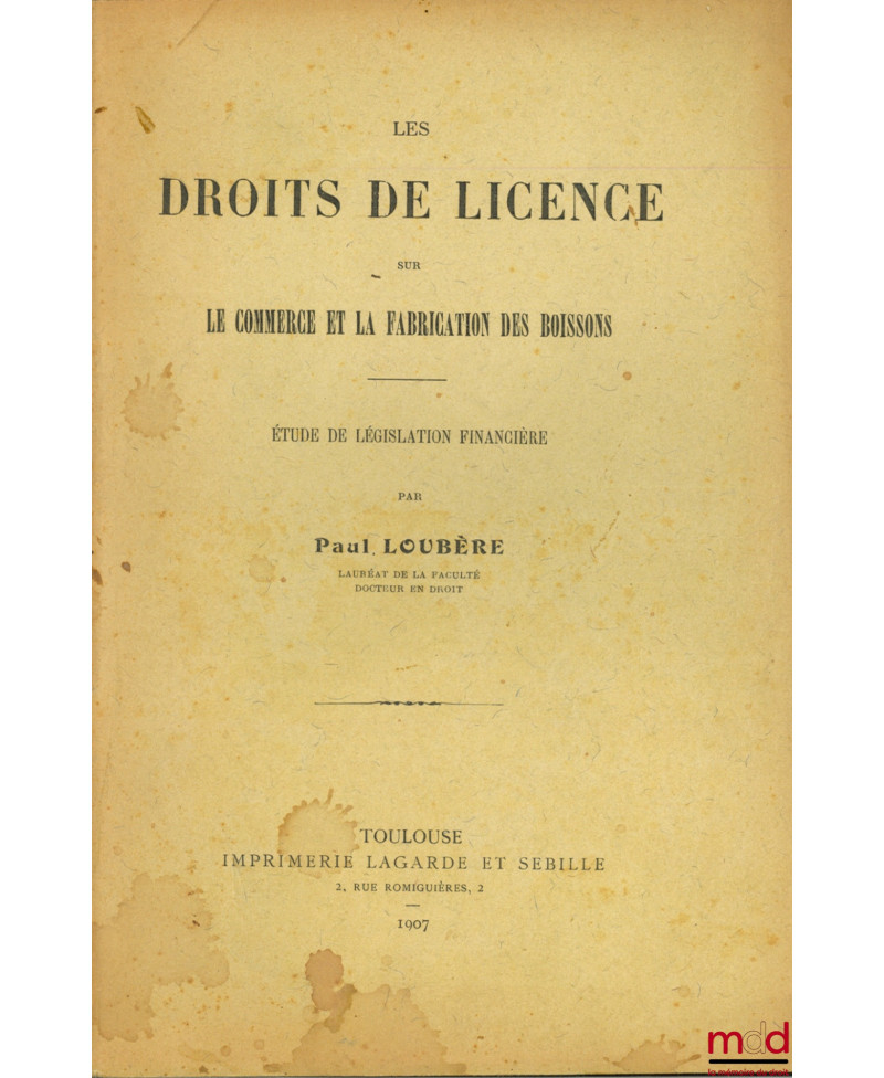 LES DROITS DE LICENCE SUR LE COMMERCE ET LE FABRICATIONS DES BOISSONS, Études de législation financière
