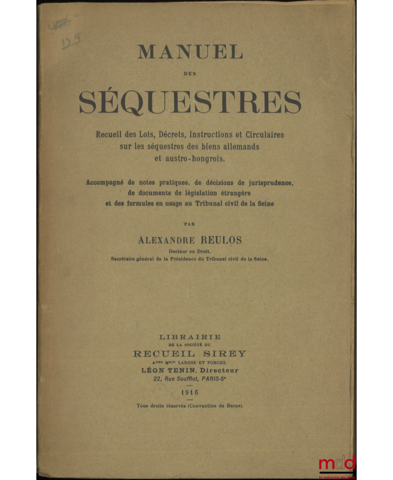 TRAITÉ THÉORIQUE ET PRATIQUE DU DROIT PROCÉDURAL DE LA GUERRE, Étude doctrinale des lois, décrets et décisions de jurispruden...