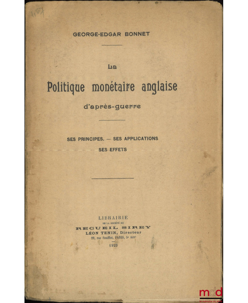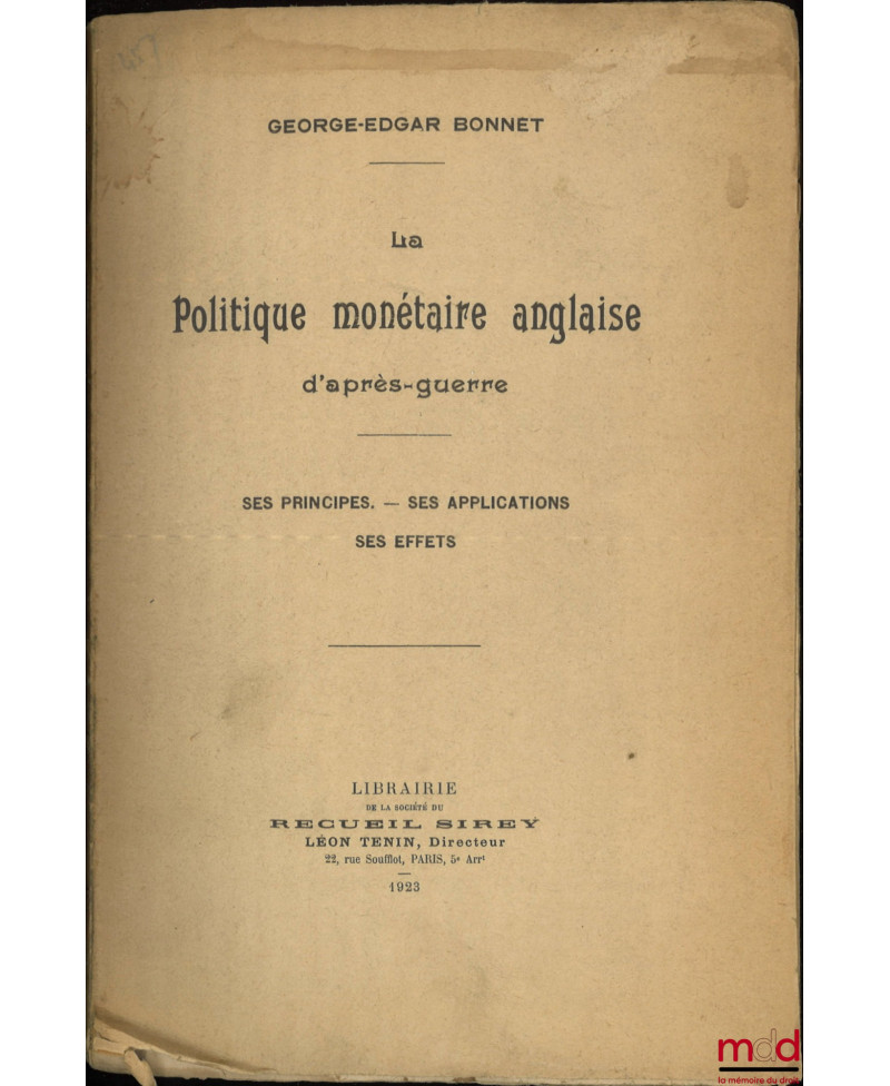 LA POLITIQUE MONÉTAIRE ANGLAISE D’APRÈS-GUERRE : SES PRINCIPES, SES APPLICATIONS, SES EFFETS