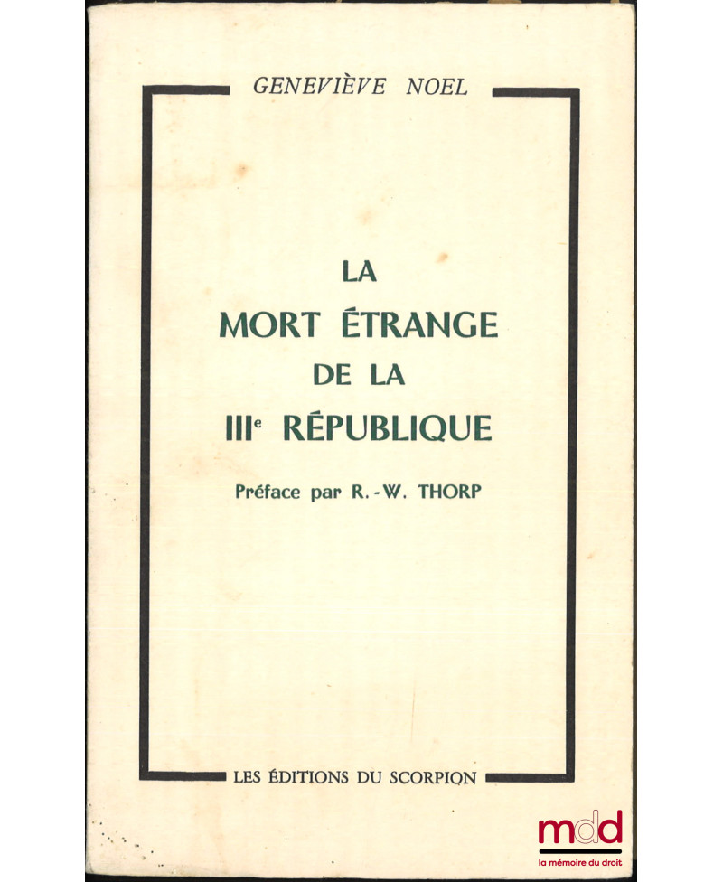 LA MORT ÉTRANGE DE LA IIIe RÉPUBLIQUE, Préface par R.-W. Thorp