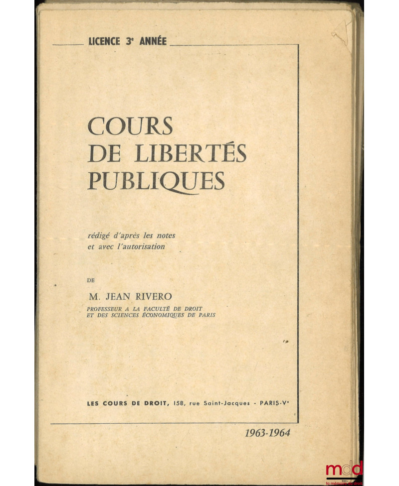 COURS DE LIBERTÉS PUBLIQUES, 1962-1963, Licence 3e année