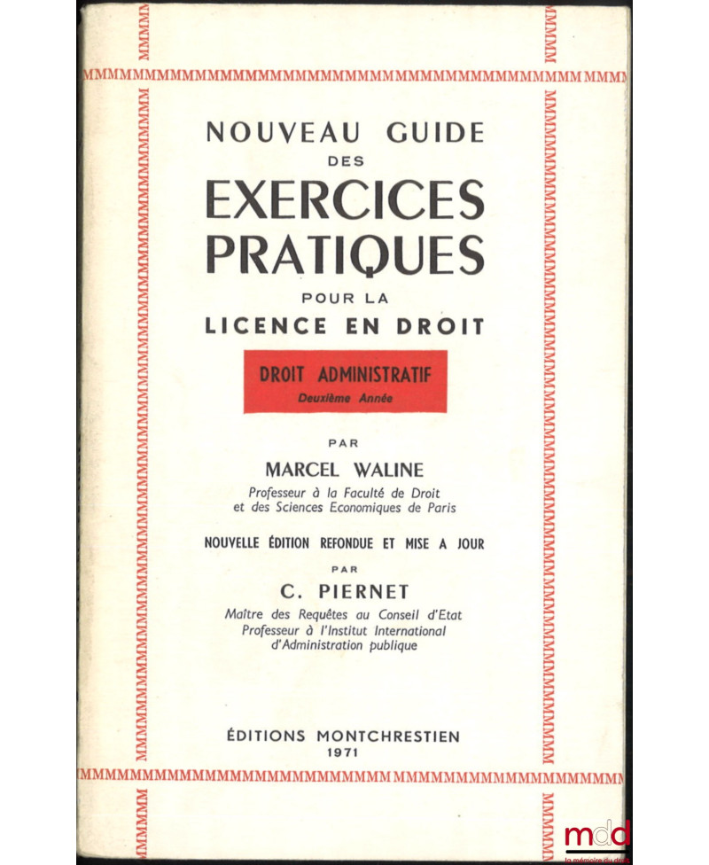 NOUVEAU GUIDE DES EXERCICES PRATIQUES POUR LA LICENCE EN DROIT, Droit administratif 2e année, Nouvelle éd. refondue et mise à jour par C. Piernet