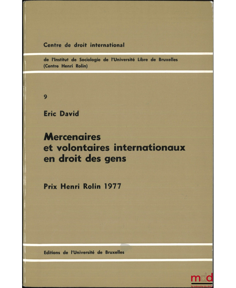 MERCENAIRES ET VOLONTAIRES INTERNATIONAUX EN DROIT DES GENS, Centre de droit international de l?Institut de sociologie de l?U...