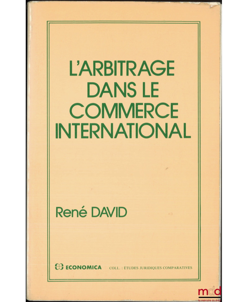 L’ARBITRAGE DANS LE COMMERCE INTERNATIONAL, coll. Études juridiques comparatives