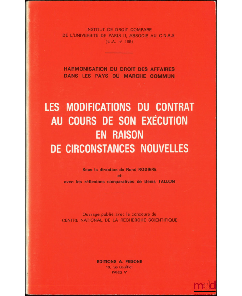 LES MODIFICATIONS DU CONTRAT AU COURS DE SON EXÉCUTION EN RAISON DE CIRCONSTANCES NOUVELLES, Harmonisation du droit des affai...