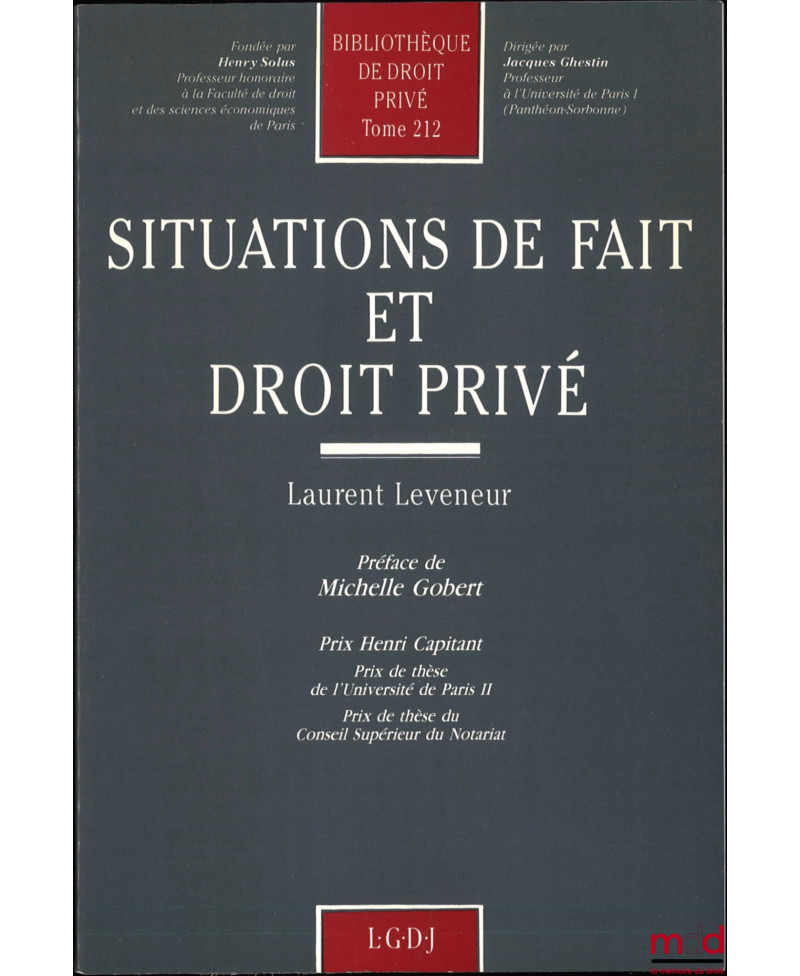 SITUATIONS DE FAIT ET DROIT PRIVÉ, Préface de Michelle Gobert, Bibl. de droit privé, t. 212