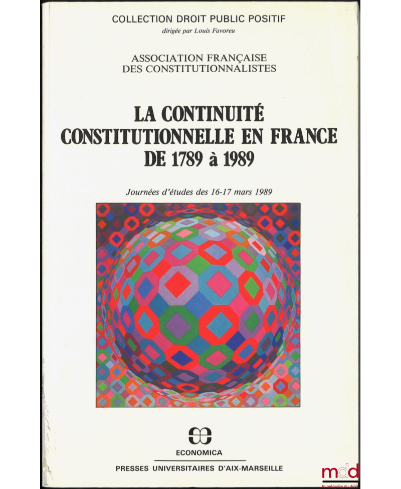 LA CONTINUITÉ CONSTITUTIONNELLE EN FRANCE DE 1789 À 1989, Journées d’études des 16-17 mars 1989, présentation de Louis Favoreu, coll. Droit Public...