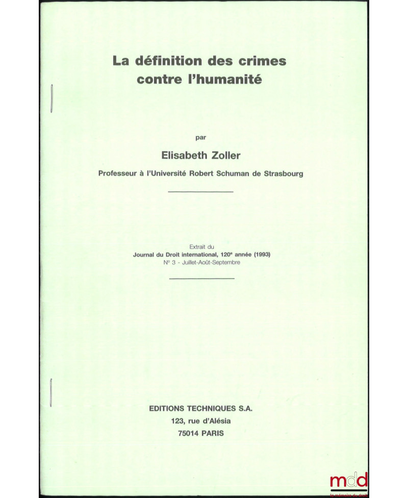 LA DÉFINITION DES CRIMES CONTRE L?HUMANITÉ, Extrait du Journal du Droit international, 120e année (1993), n° 3 - Juillet-Août...