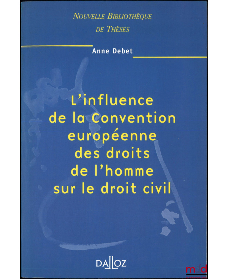 L?INFLUENCE DE LA CONVENTION EUROPÉENNE DES DROITS DE L?HOMME SUR LE DROIT CIVIL, Préface de Laurent Leveneur, Nouvelle bibl....