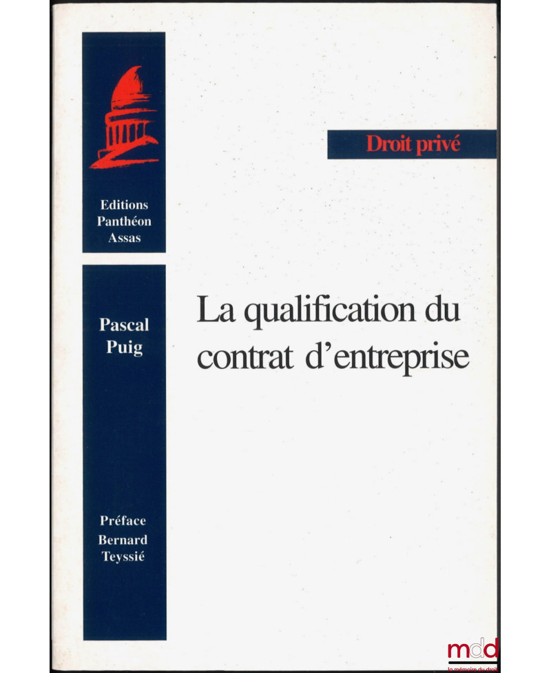 LA QUALIFICATION DU CONTRAT D’ENTREPRISE, Préface de Bernard Teyssié, coll. Droit privé