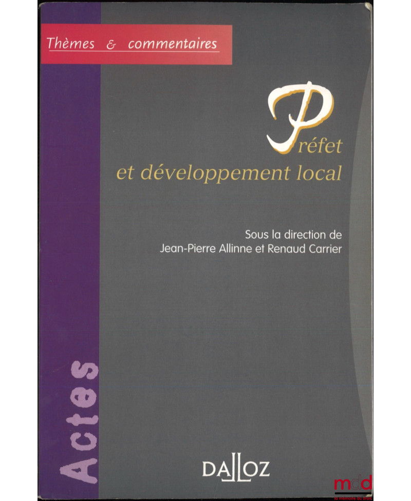 PRÉFET ET DÉVELOPPEMENT LOCAL, dir. Jean-Pierre Allinne et Renaud Carrier