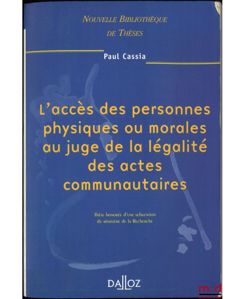 L’ACCÈS DES PERSONNES PHYSIQUES OU MORALES AU JUGE DE LA LÉGALITÉ DES ACTES COMMUNAUTAIRES, Nouvelle bibl. de thèses