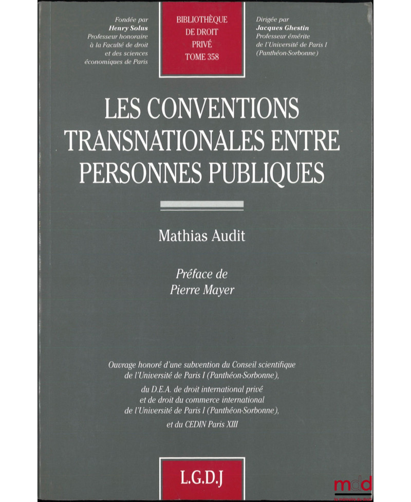 LES CONVENTIONS TRANSNATIONALES ENTRE PERSONNES PUBLIQUES, Préface de Pierre Mayer, Bibl. de droit privé, t. 358