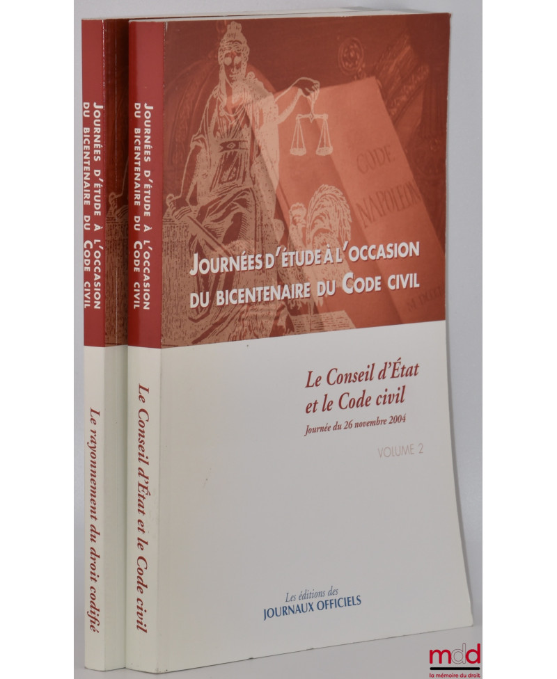 JOURNÉES D’ÉTUDE À L’OCCASION DU BICENTENAIRE DU CODE CIVIL ; t. I : Le rayonnement du droit codifié (journée du 25 novembre 2004) ; t. II : Le...
