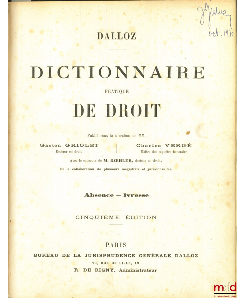Le portail de la bibliothèque patrimoniale de droit de La Mémoire du Droit CATALOGUE ÉTÉ 2025  —...