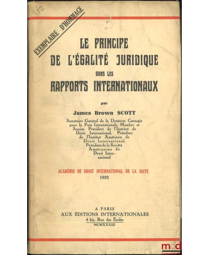 LE PRINCIPE DE L’ÉGALITÉ JURIDIQUE DANS LES RAPPORTS INTERNATIONAUX, Académie de droit international de La Haye, 1932
