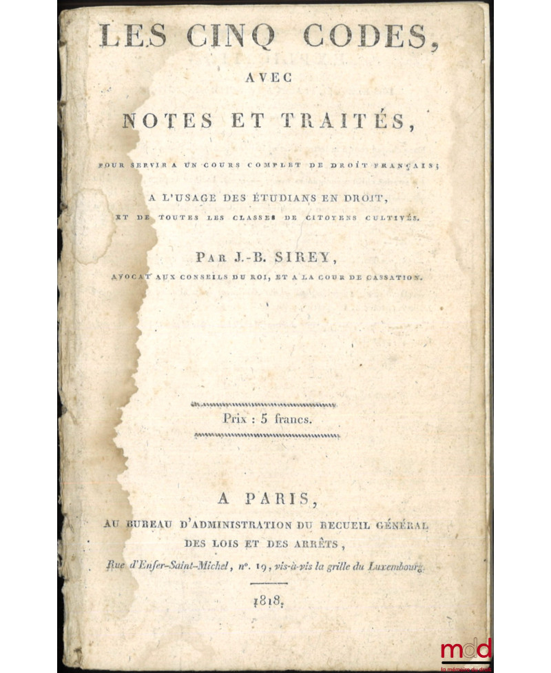 COURS DE CODE NAPOLÉON, 1re éd.
