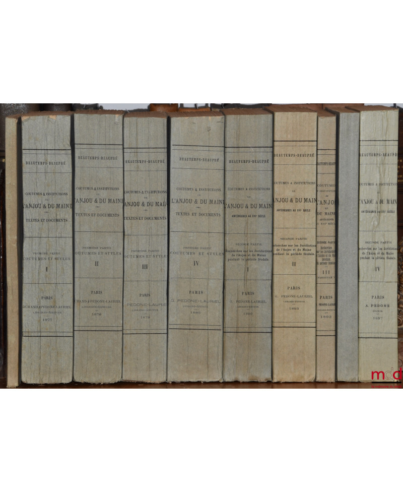 COUTUMES ET INSTITUTIONS DE L?ANJOU & DU MAINE antérieures au XVIe siècle, Textes et documents avec notes et dissertations. P...
