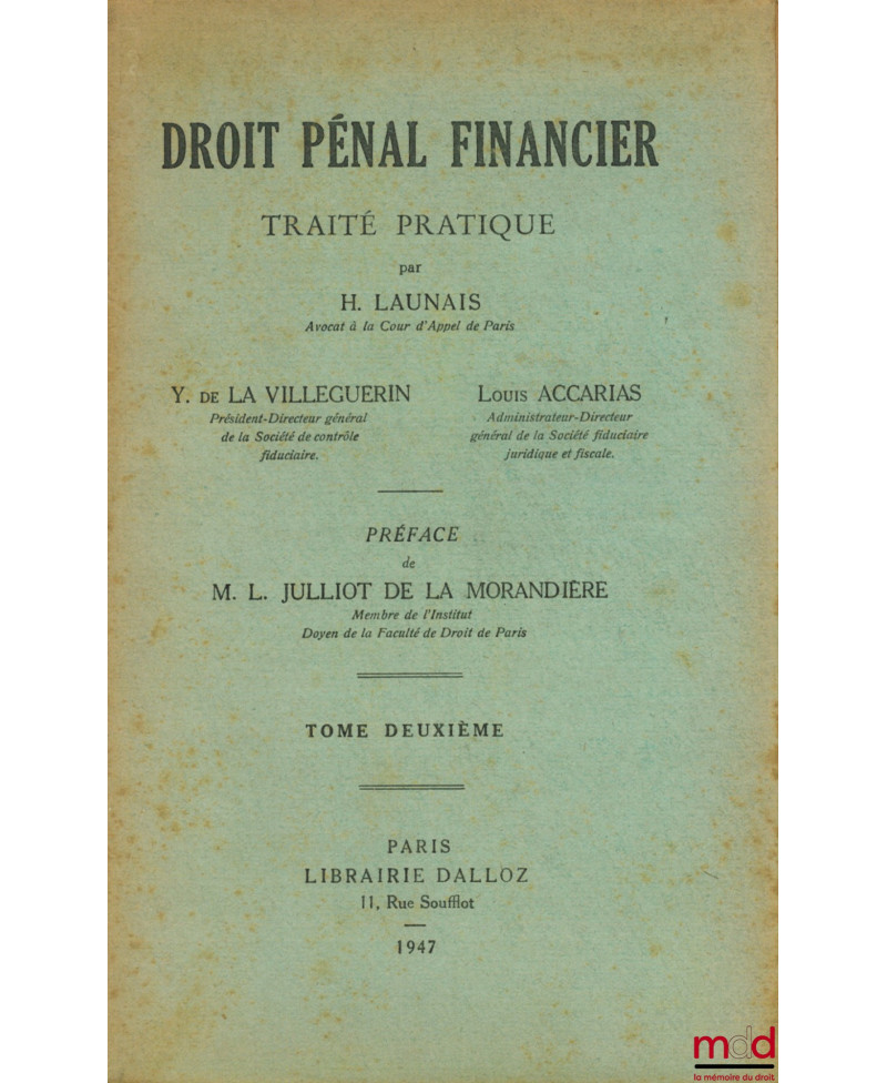 DROIT PÉNAL FINANCIER, TRAITÉ PRATIQUE, Préface L. Julliot de la Morandière