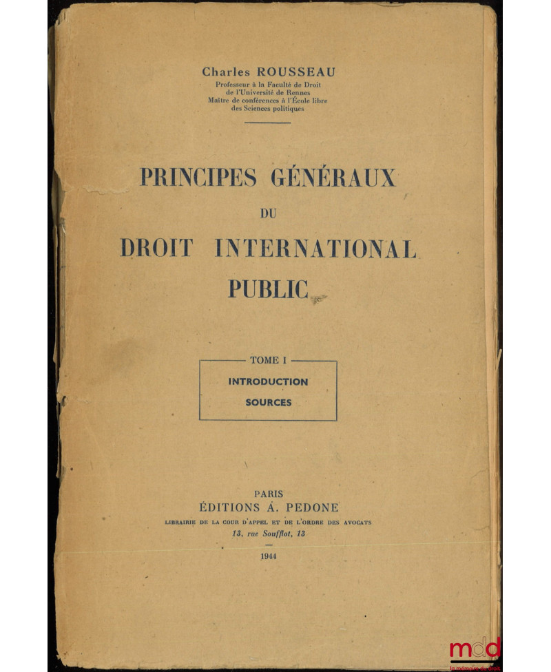 Aperçu Ajouter au panier Ajouter à vos souhaits Comparer Droit moderne (XX-XXIe siècles) ROUSSEAU (Charles) PRINCIPES GÉNÉRAUX DU DROIT INTERNATIONAL PUBLIC, t. I [seul] : Introduction – Sources Prix PRINCIPES GÉNÉRAUX DU DROIT INTERNATIONAL PUBLIC, t. I [seul] : Introduction – Sources