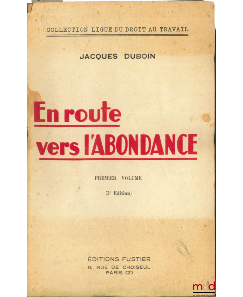 EN ROUTE VERS L’ABONDANCE, premier volume (2ème éd.), coll. Ligue du droit au travail