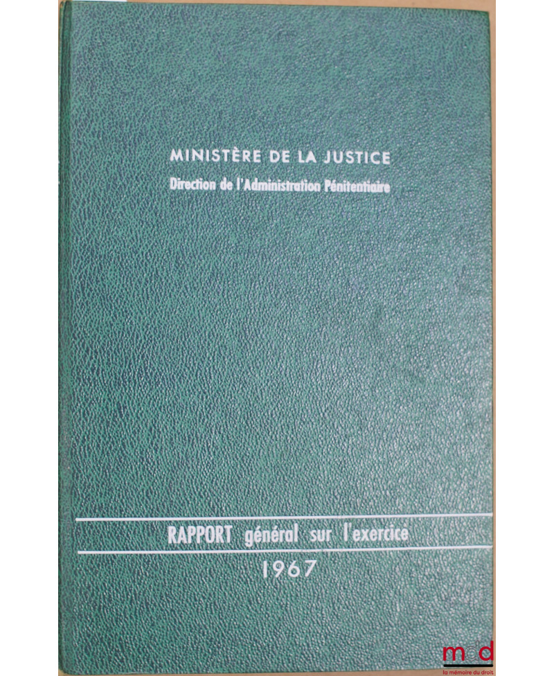MINISTÈRE DE LA JUSTICE, DIRECTION DE L’ADMINISTRATION PÉNITENTIAIRE : RAPPORT GÉNÉRAL SUR L’EXERCICE 1969