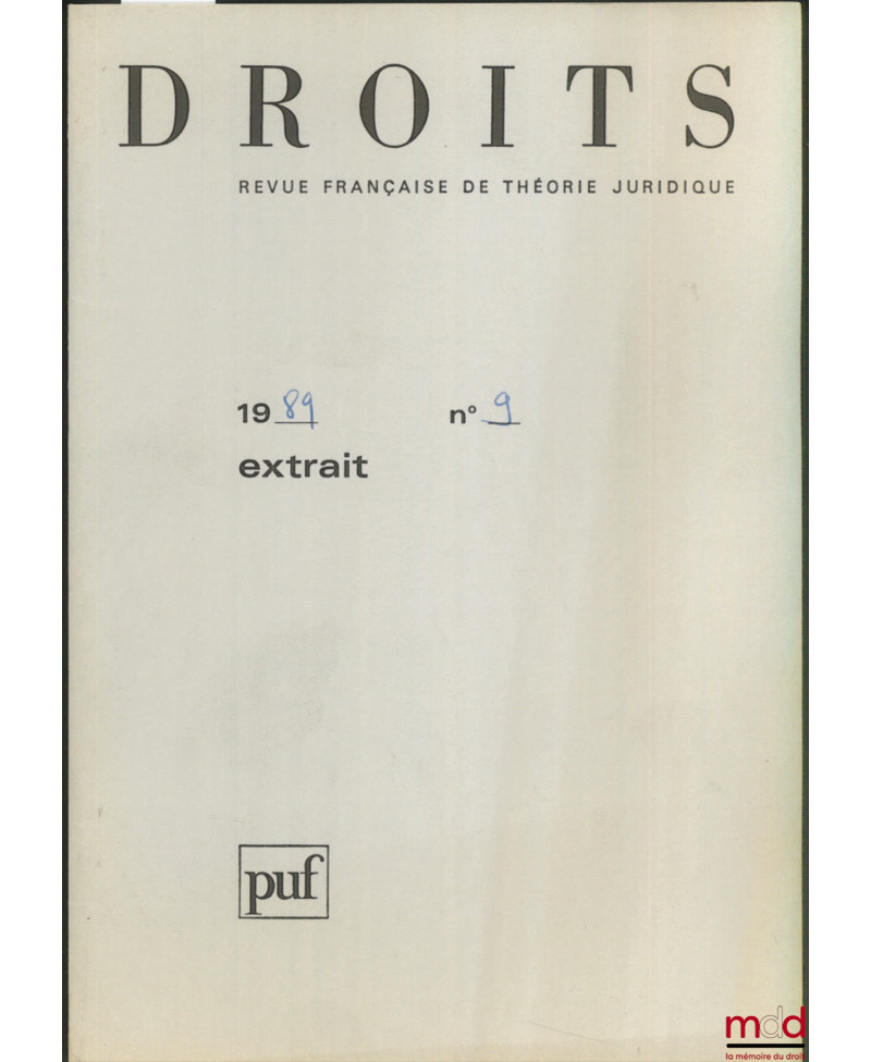 LA JURIDICTION INTERNATIONALE, extrait de la Revue française de théorie juridique DROITS n° 9 de 1989