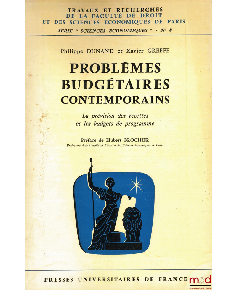 PROBLÈMES BUDGÉTAIRES CONTEMPORAINS. La prévision des recettes et les budgets de programme, Préface H. Brochier, coll. Travaux et rech. de la...