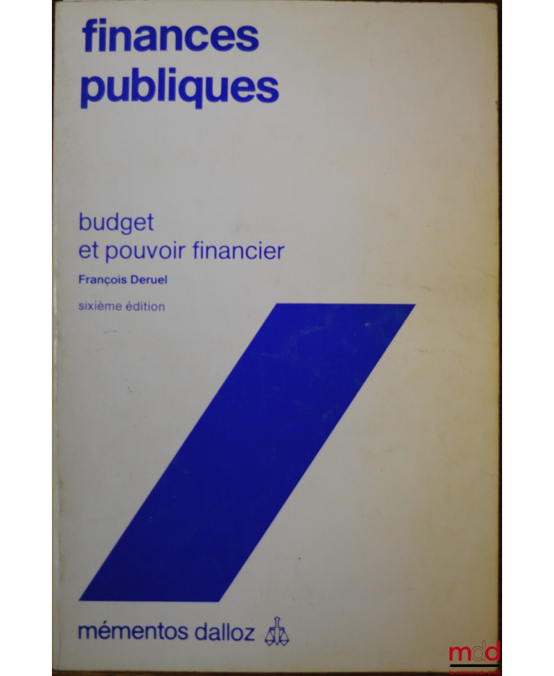 FINANCES PUBLIQUES, BUDGET ET POUVOIR FINANCIER, 6ème éd., coll. Mémentos Dalloz