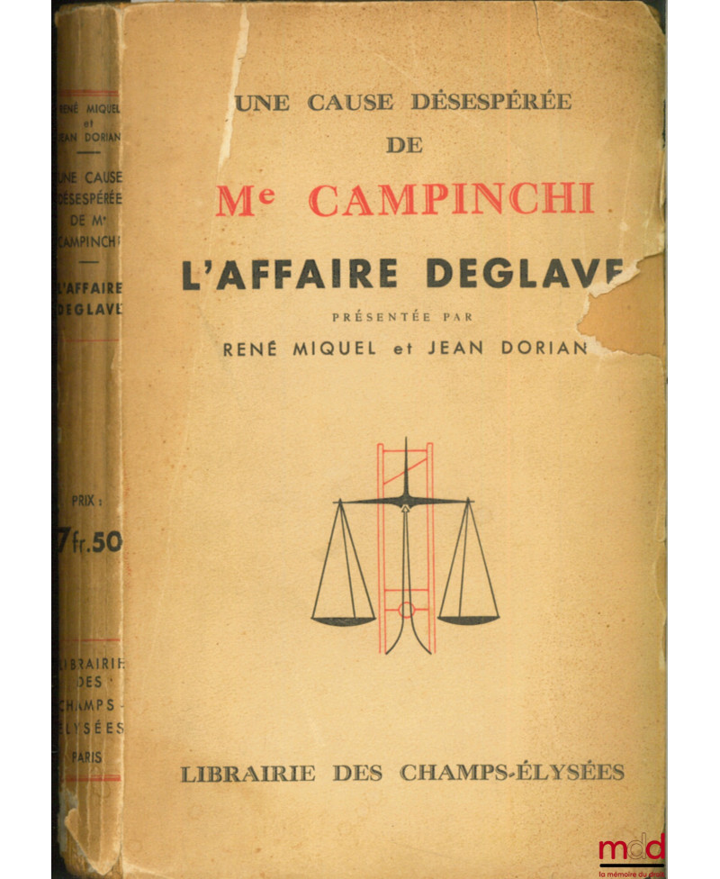 Aperçu Ajouter au panier Ajouter à vos souhaits Comparer Droit moderne (XX-XXIe siècles) MIQUEL (René) et DORIAN (Jean) UNE CAUSE DÉSESPÉRÉE DE ME. CAMPINCHI, L’AFFAIRE DEGLAVE Prix UNE CAUSE DÉSESPÉRÉE DE ME. CAMPINCHI, L’AFFAIRE DEGLAVE