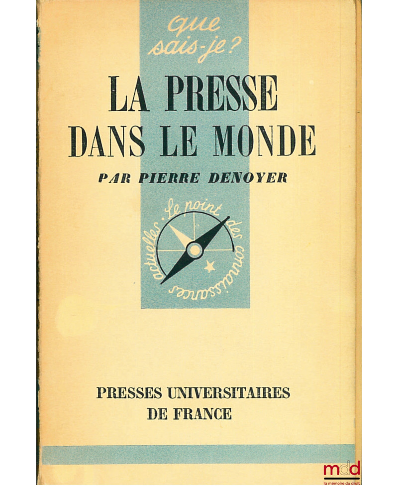 Aperçu Ajouter au panier Ajouter à vos souhaits Comparer Droit moderne (XX-XXIe siècles) DENOYER (Pierre) LA PRESSE DANS LE MONDE, E.O., coll. Que sais-je ? Prix LA PRESSE DANS LE MONDE, E.O., coll. Que sais-je ?