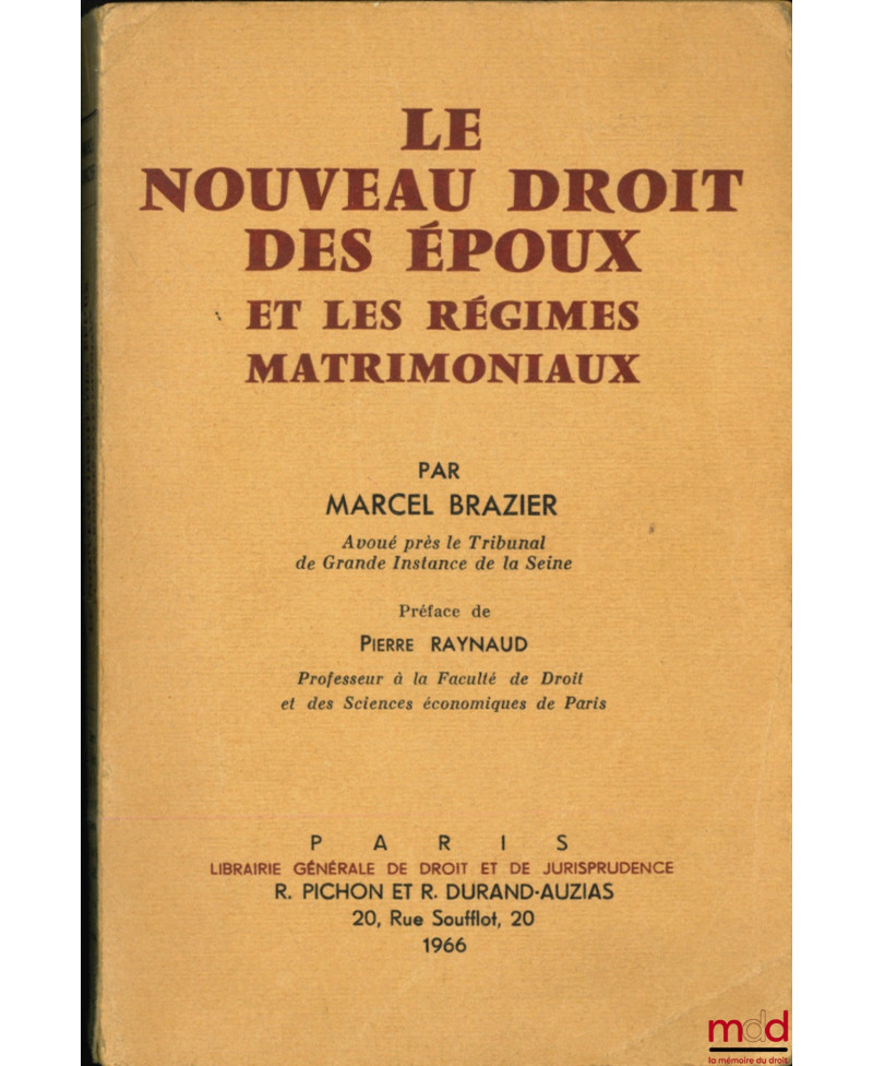 LE NOUVEAU DROIT DES ÉPOUX ET LES RÉGIMES MATRIMONIAUX, Préface de Pierre Raynaud