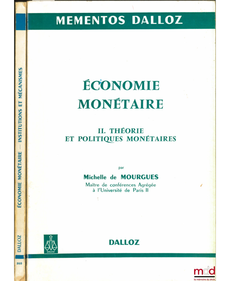 ÉCONOMIE MONÉTAIRE. t. I : INSTITUTIONS ET MÉCANISMES, 2e éd. ; t. II : THÉORIE ET POLITIQUES MONÉTAIRES, coll. Mémentos Dalloz