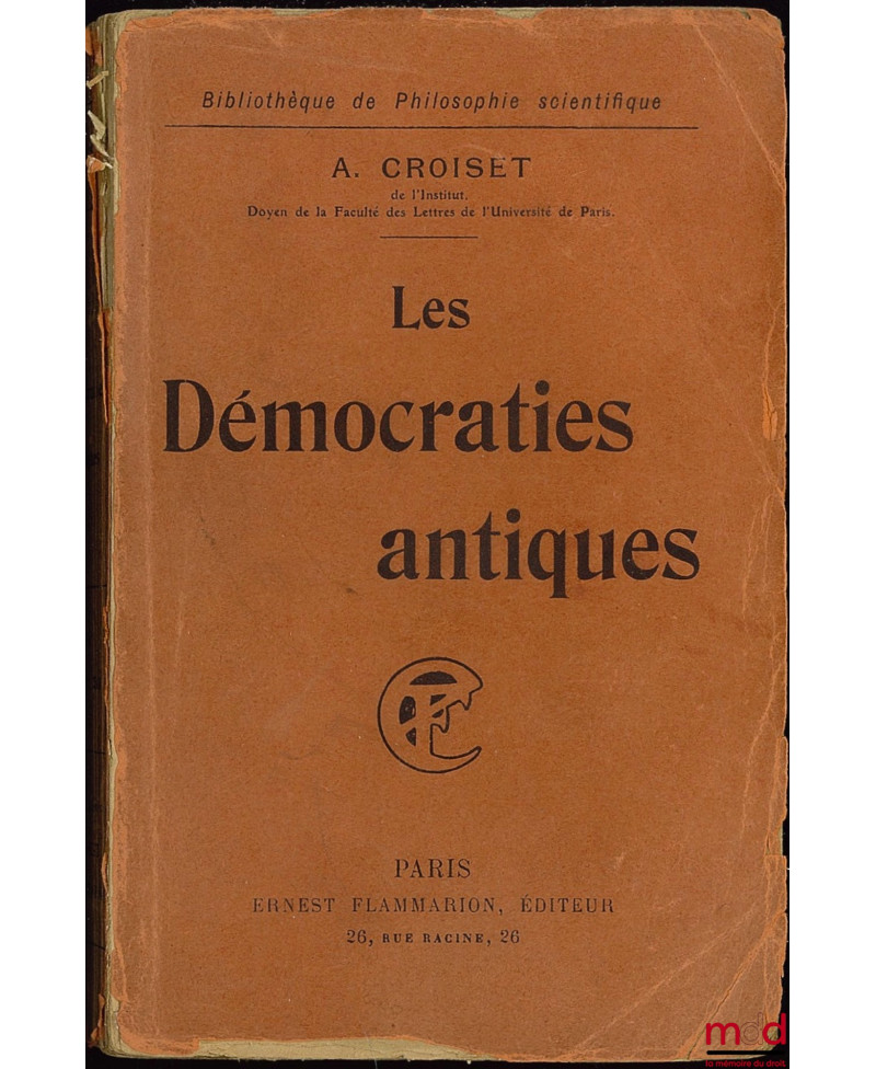 Aperçu Ajouter au panier Ajouter à vos souhaits Comparer Droit moderne (XX-XXIe siècles) CROISET (A.) LES DÉMOCRATIES ANTIQUES, coll. Bibl. de Philosophie scientifique Prix LES DÉMOCRATIES ANTIQUES, coll. Bibl. de Philosophie scientifique
