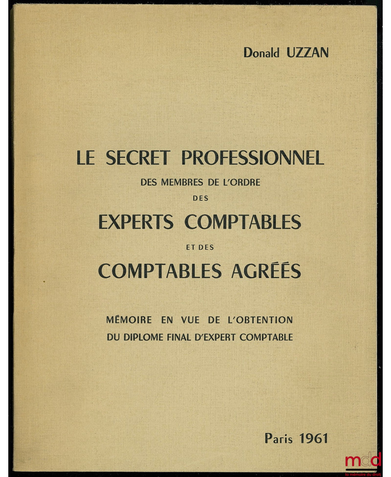 LE SECRET PROFESSIONNEL DES MEMBRES DE L?ORDRE DES EXPERTS-COMPTABLES ET DES COMPTABLES AGRÉÉS, Mémoire en vue de l?obtention...