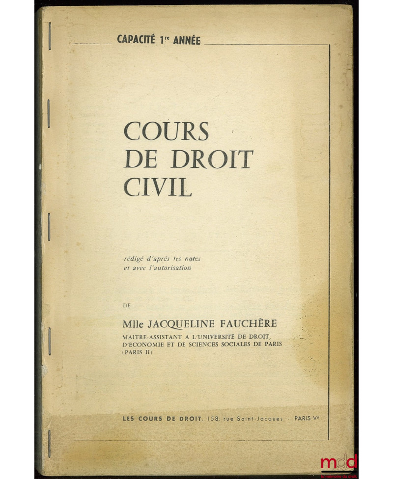 COURS DE DROIT CIVIL rédigé d’après les notes et avec l’autorisation de J. F., capacité 1ère année