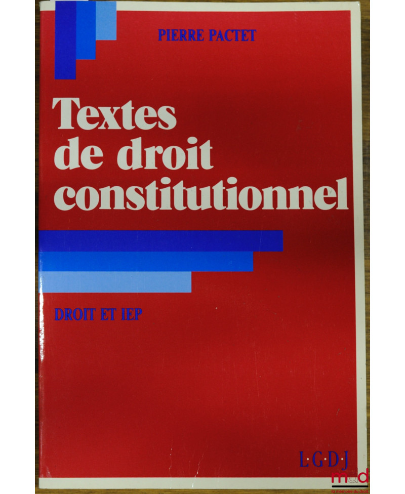 Aperçu Ajouter au panier Ajouter à vos souhaits Comparer Droit moderne (XX-XXIe siècles) PACTET (Pierre) TEXTES DE DROIT CONSTITUTIONNEL, DROIT ET IEP Prix TEXTES DE DROIT CONSTITUTIONNEL, DROIT ET IEP