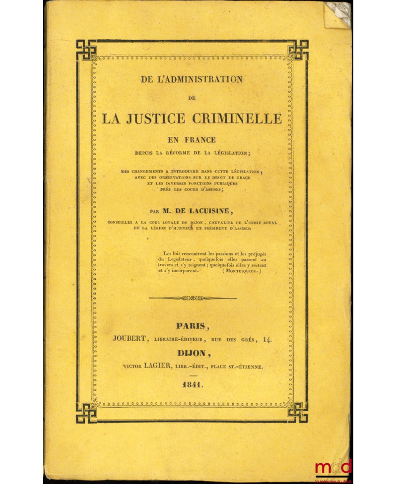 DE L’ADMINISTRATION DE LA JUSTICE CRIMINELLE EN FRANCE DEPUIS LA RÉFORME DE LA LÉGISLATION, Des changements à introduire dans cette législation,...