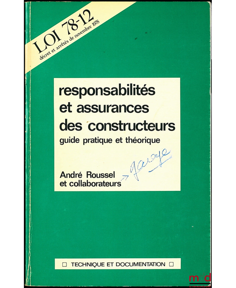 LOI 78-12, DÉCRET ET ARRÊTÉS DE NOVEMBRE 1978, RESPONSABILITÉS ET ASSURANCES DES CONSTRUCTEURS, guide pratique et théorique