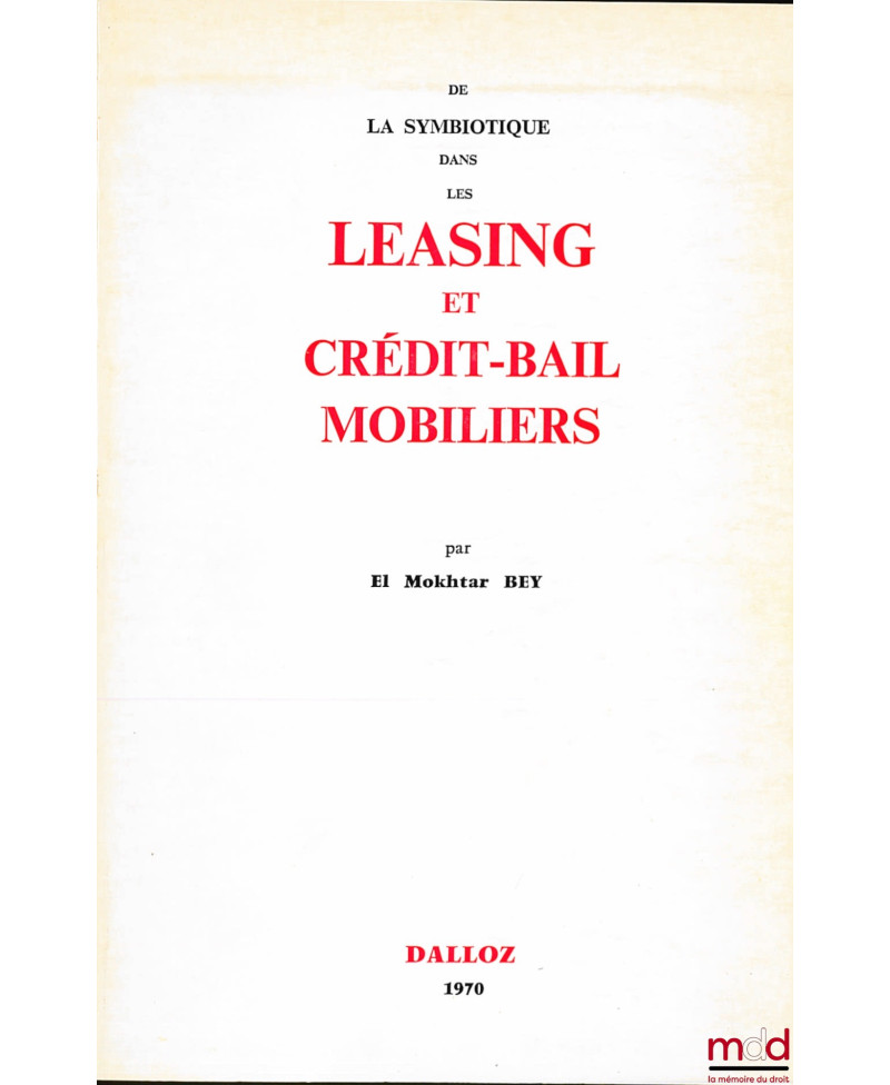 Aperçu Ajouter au panier Ajouter à vos souhaits Comparer Droit moderne (XX-XXIe siècles) BEY (El Mokhtar) DE LA SYMBIOTIQUE DANS LES LEASING ET CRÉDIT-BAIL MOBILIERS Prix DE LA SYMBIOTIQUE DANS LES LEASING ET CRÉDIT-BAIL MOBILIERS