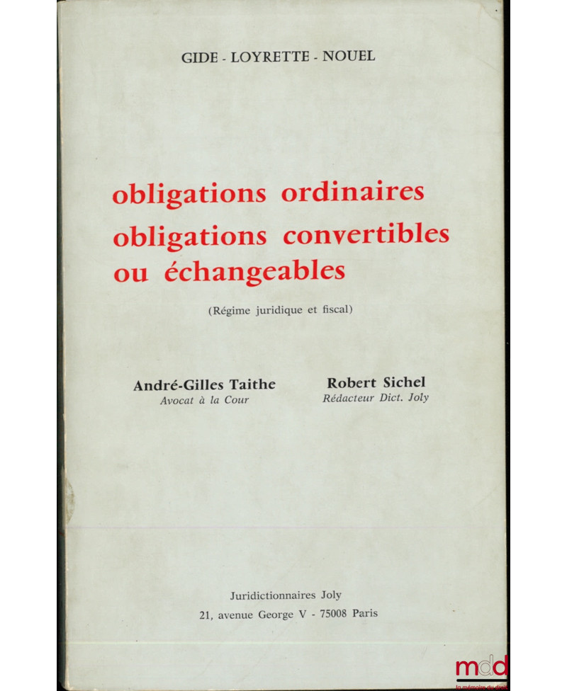 OBLIGATIONS ORDINAIRES, OBLIGATIONS CONVERTIBLES OU ÉCHANGEABLES (Régime juridique et fiscal), Ext. du Dictionnaire des Sociétés Anonymes, coll....