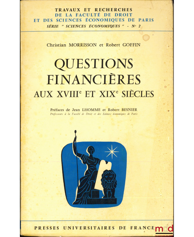 QUESTIONS FINANCIÈRES AUX XVIIème ET XIXème SIÈCLES, Préface de Jean Lhomme et Robert Besnier