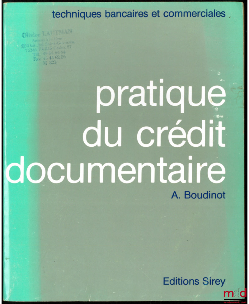 PRATIQUE DU CRÉDIT DOCUMENTAIRE, coll. Techniques bancaires et commerciales