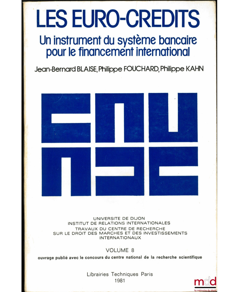 LES EURO-CRÉDITS - UN INSTRUMENT DU SYSTÈME BANCAIRE POUR LE FINANCEMENT INTERNATIONAL, Université de Dijon, Institut de rela...