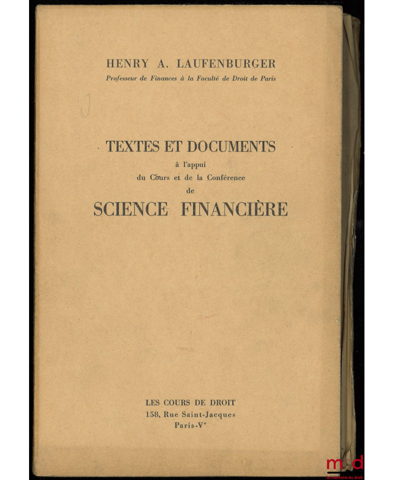 TEXTES ET DOCUMENTS À L’APPUI DU COURS ET DE LA CONFÉRENCE DE SCIENCE FINANCIÈRE ; Supplément : Mise à jour au 1er Janvier 1956