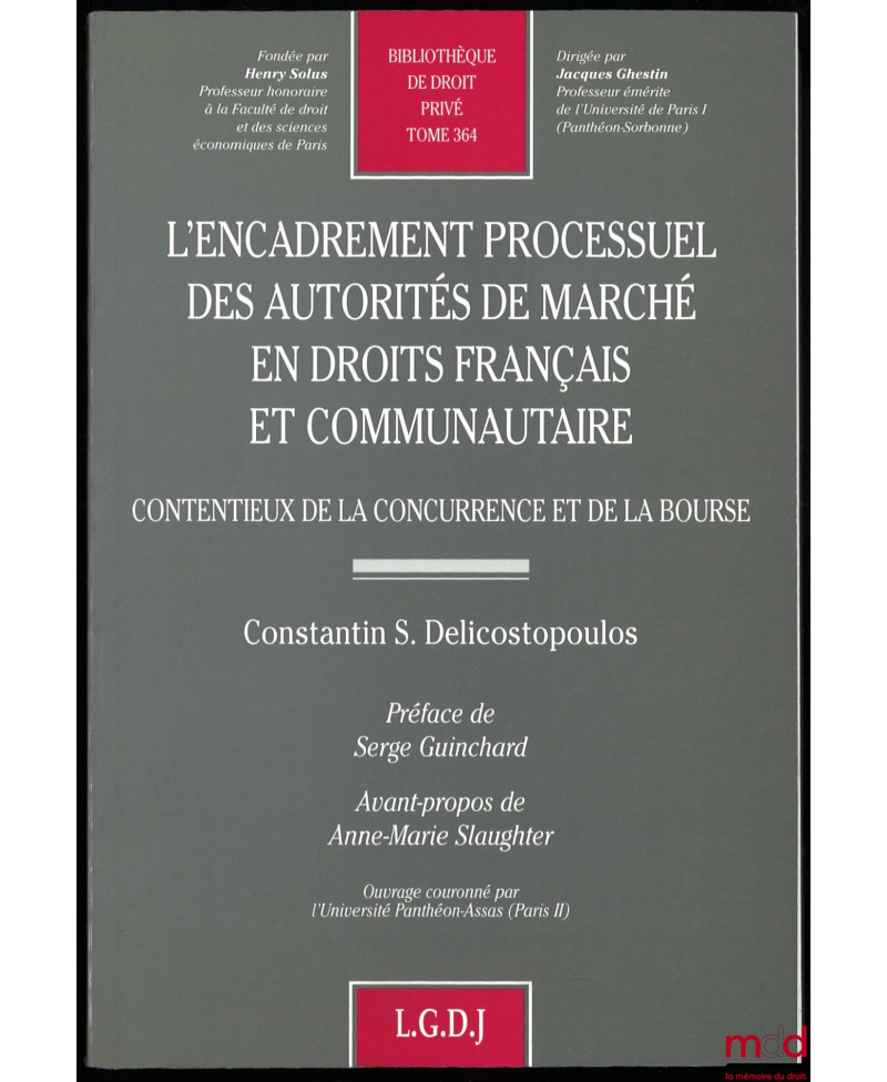 L’ENCADREMENT PROCESSUEL DES AUTORITÉS DE MARCHÉ EN DROITS FRANÇAIS ET COMMUNAUTAIRE, Contentieux de la concurrence et de la Bourse, préface de...