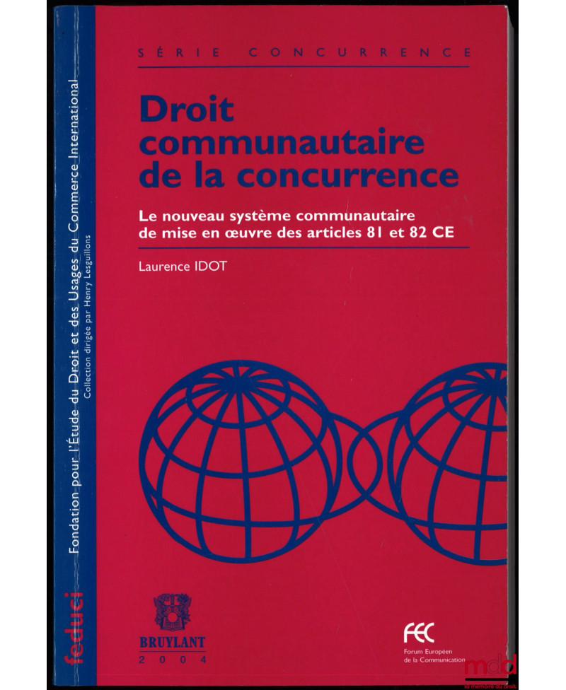 DROIT COMMUNAUTAIRE DE LA CONCURRENCE. Le nouveau système communautaire de mise en œuvre des articles 81 et 82 CE, coll. Fondation pour l’Étude du...