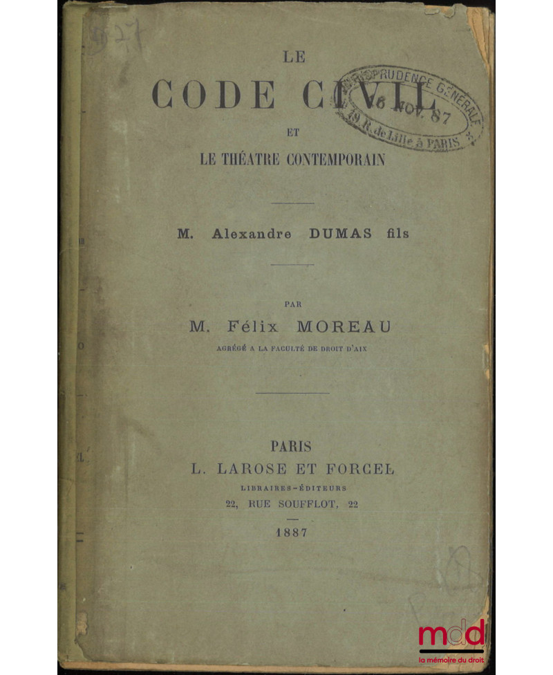 Nouvelle acquisition Aperçu Ajouter au panier Ajouter à vos souhaits Comparer XIXe siècle MOREAU (Félix) LE CODE CIVIL ET LE THÉÂTRE CONTEMPORAIN, M. Alexandre Dumas fils Prix LE CODE CIVIL ET LE THÉÂTRE CONTEMPORAIN, M. Alexandre Dumas fils