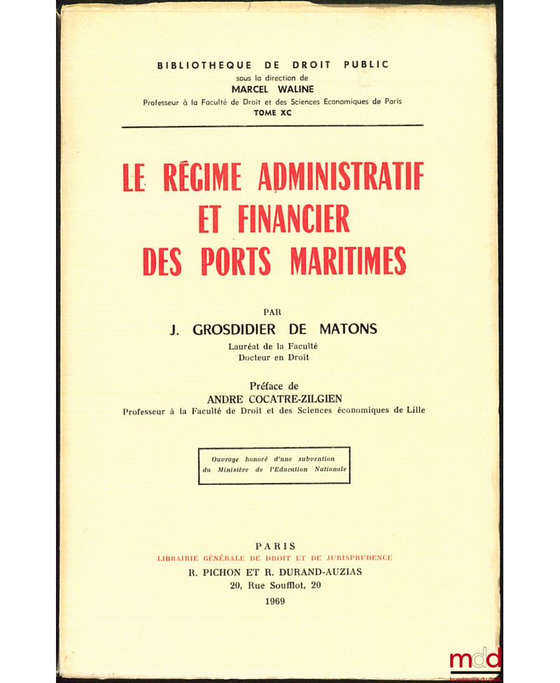 LE RÉGIME ADMINISTRATIF ET FINANCIER DES PORTS MARITIMES, Préface André Cocatre-Zilgien, Bibl. de droit public, t. XC