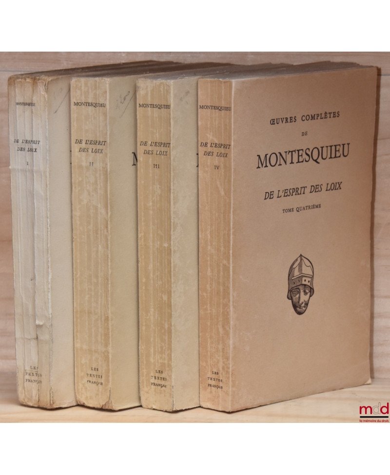 MONTESQUIEU, DE L’ESPRIT DES LOIX. Textes établi et présenté par J. Brethe de la Gressaye, coll. Les textes français :Tome premier : Livres I-IX...
